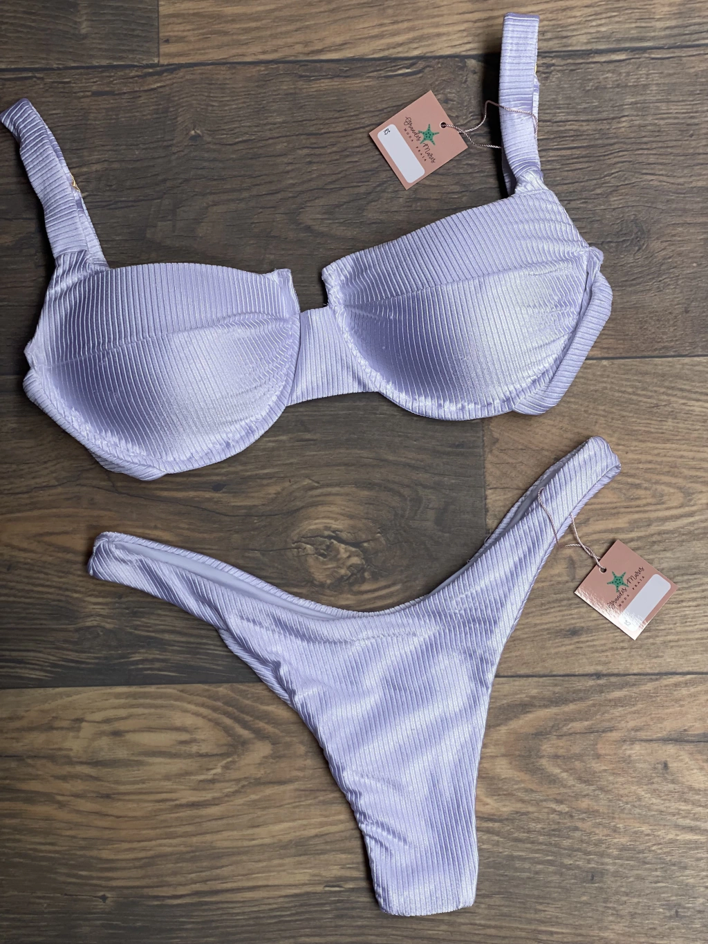 • 👙 Top: sutiã com aro, alças reguláveis e amarração em laço nas costas