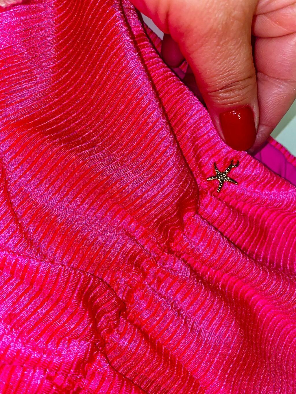 Não se preocupe, nossos metais não oxidam com a água do mar e a cor do tecido vibrante não desbota.